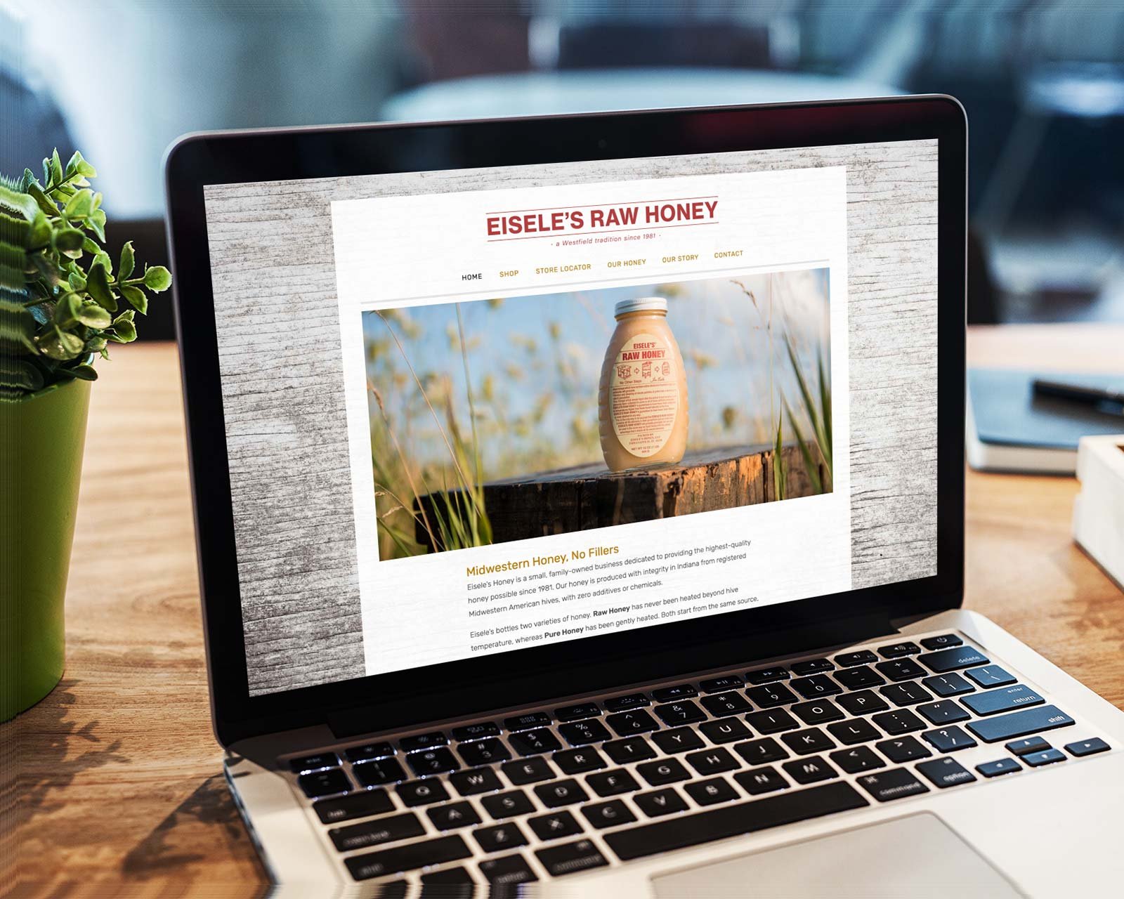 We designed this honey website to have a soft, warm feeling, and we included a weathered wood background because this honey producer liked imagery of old weathered hive boxes. We pulled together the text from multiple sources and helped organize and edit it. We designed an interactive store locator, and we also configured Eisele’s Amazon account and product listings.